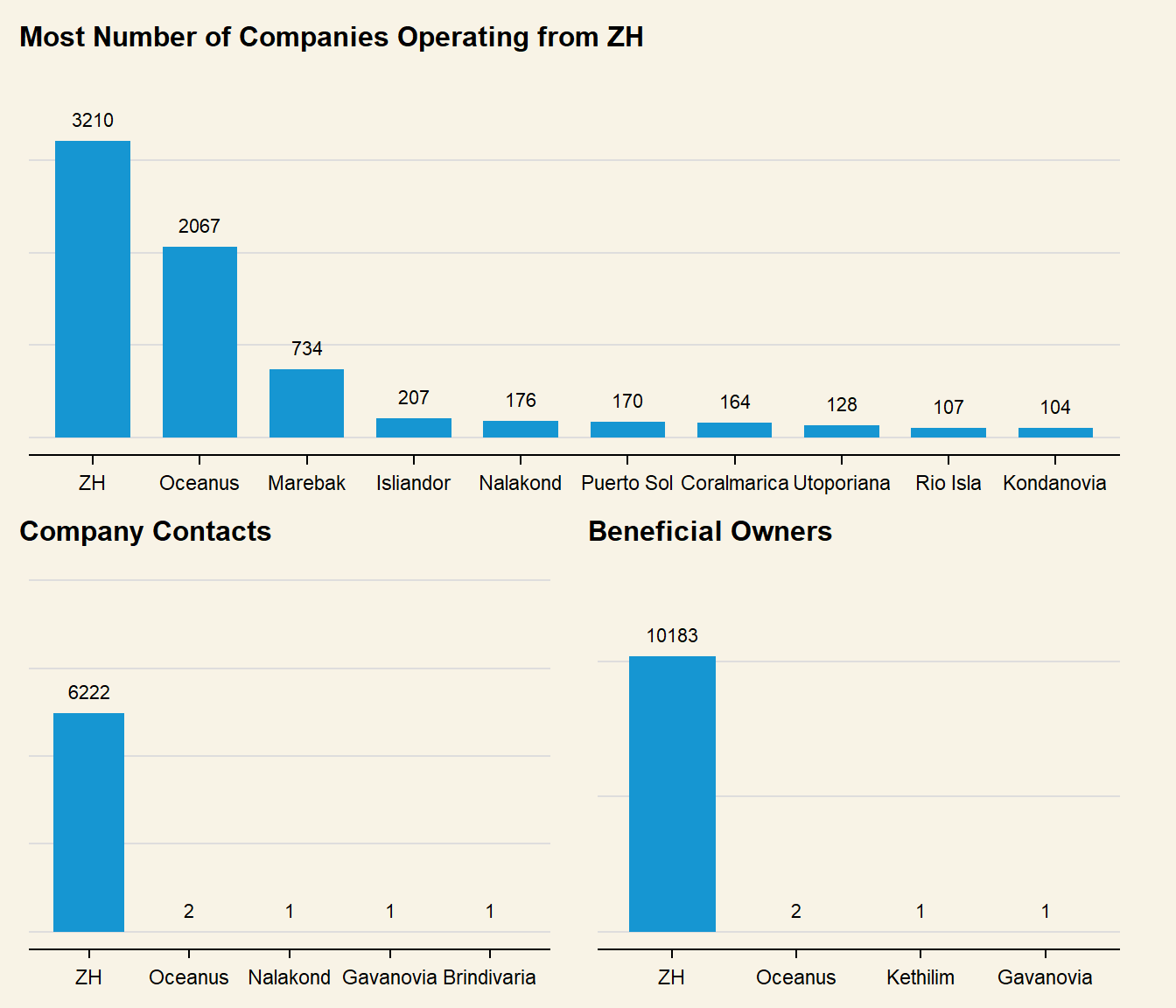 Similarly to Section 3.1.3, Entities in the Nodes dataframe could possess multiple roles within the network, or operate from different countries. As this may point towards fishy structures, this data is investigated further: