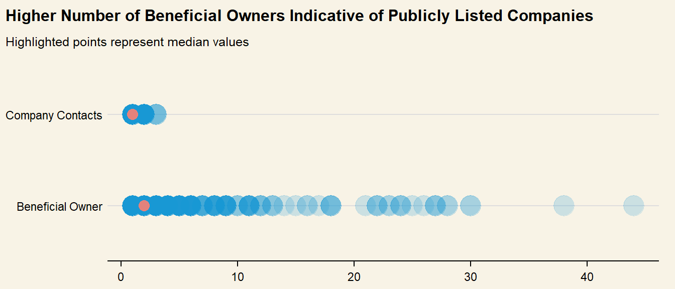 # Bind into single dataframeowner_nodes <-bind_rows(owner_source, owner_target) %>%distinct()owner_nodes$group <-ifelse(owner_nodes$id %in% owner_count$target, "Beneficial Owner", "Company")
