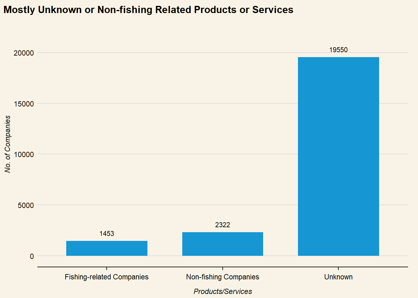 Explorations revealed that most frequently declared products/services are related to the fishing industry. This is unsurprising.